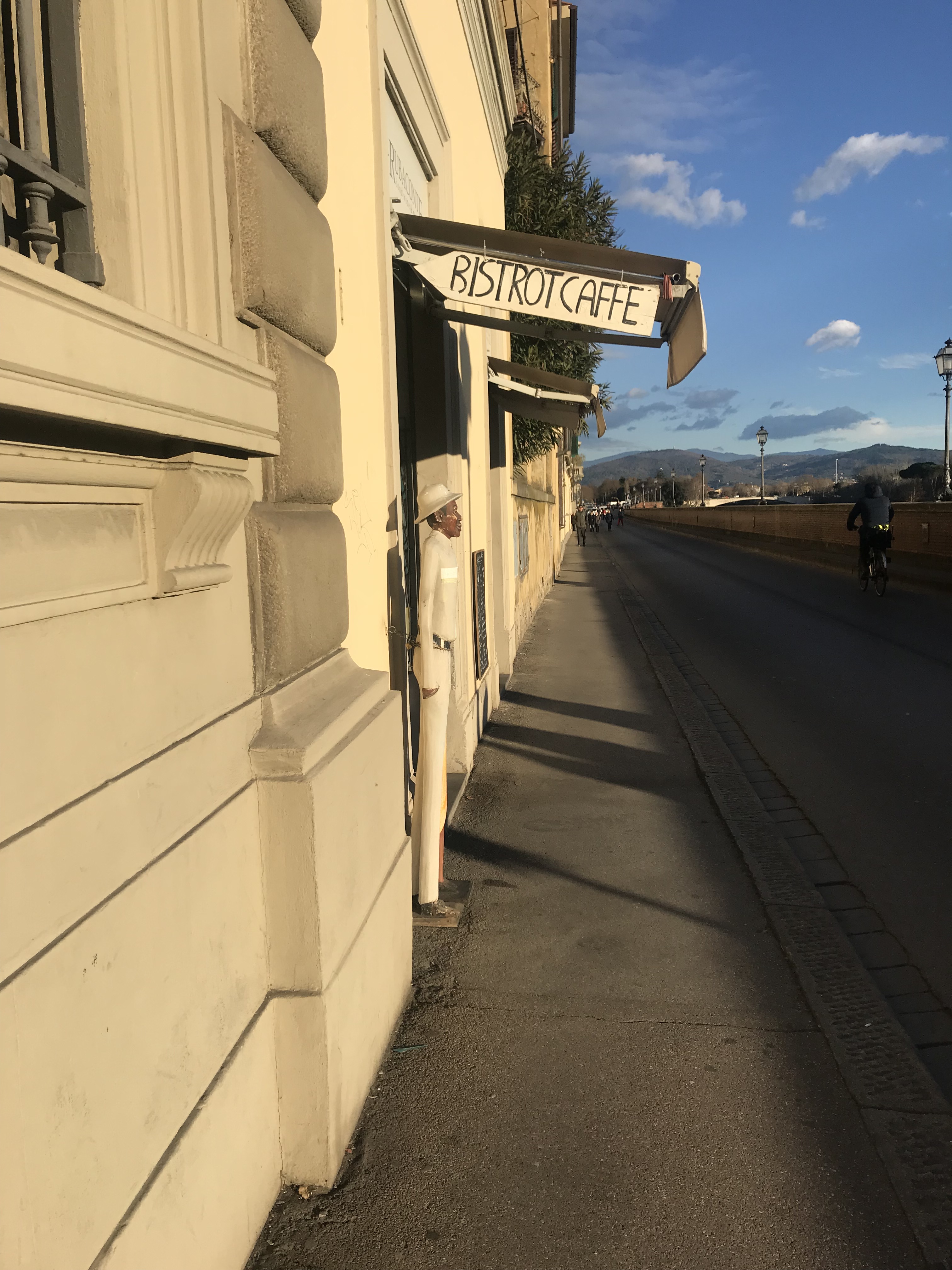 Down the street from where I live here in Florence for the month is this little cafe. Out of mere convenience my roommates and I stopped there for coffee and breakfast on our way to the first group activity. There was one man working there who was very friendly and we were able to communicate with. When we were walking home later that day we saw he was still working there 8 hours later, just him. I felt so shocked because usually coffee shops have shifts and multiple employees.